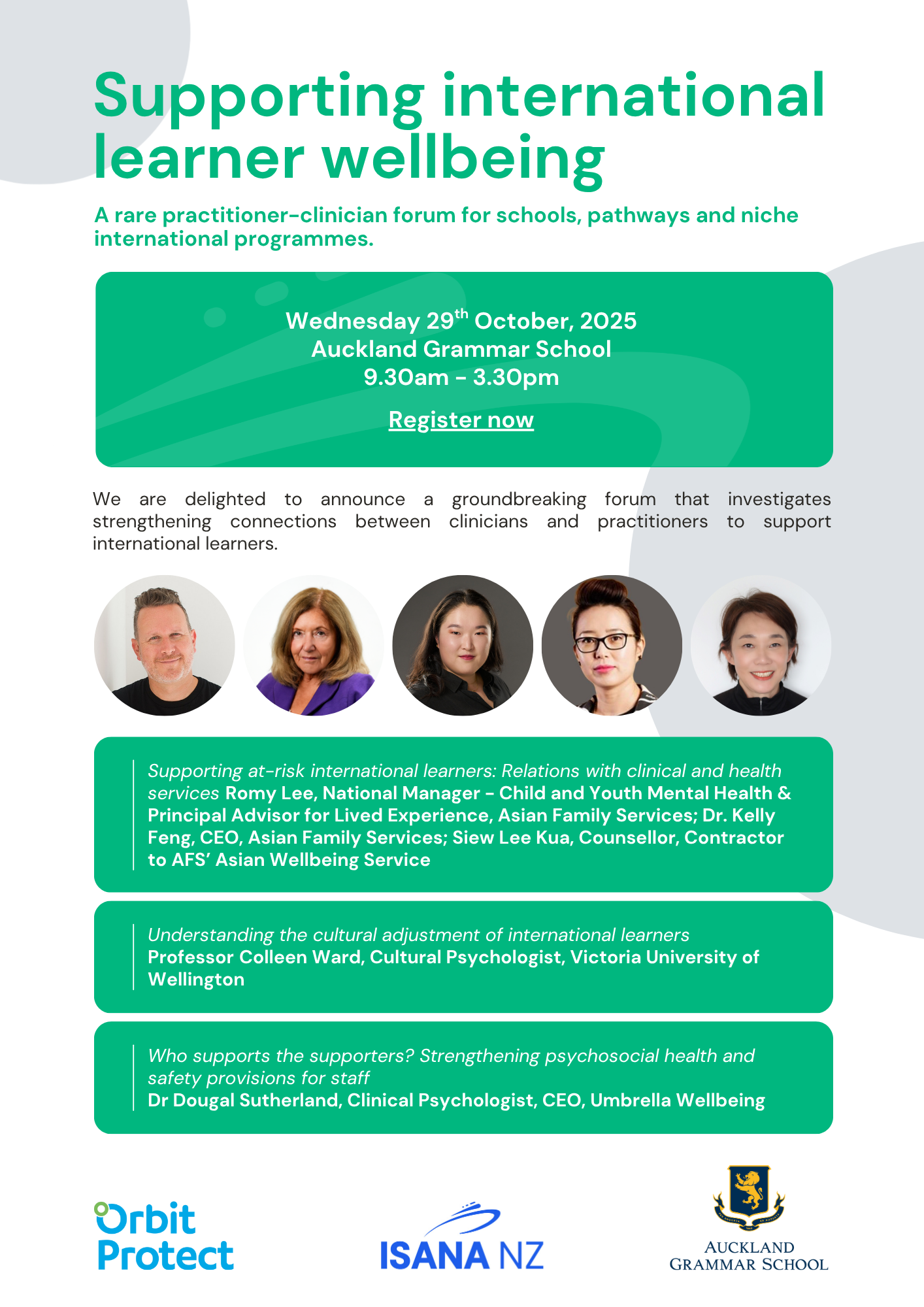 We're delighted that the Supporting cross-border students symposium hosted by the University of Auckland in June was such a success. Heart-felt thanks in particular to , , and Colleen Ward for delivering high quality presentations that sparked stimulating conversations, connections and collaborative solutions.
